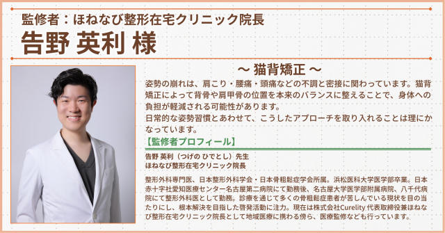 そんな不調を原因ごと取り除くことができるのが‘‘猫背矯正”です。